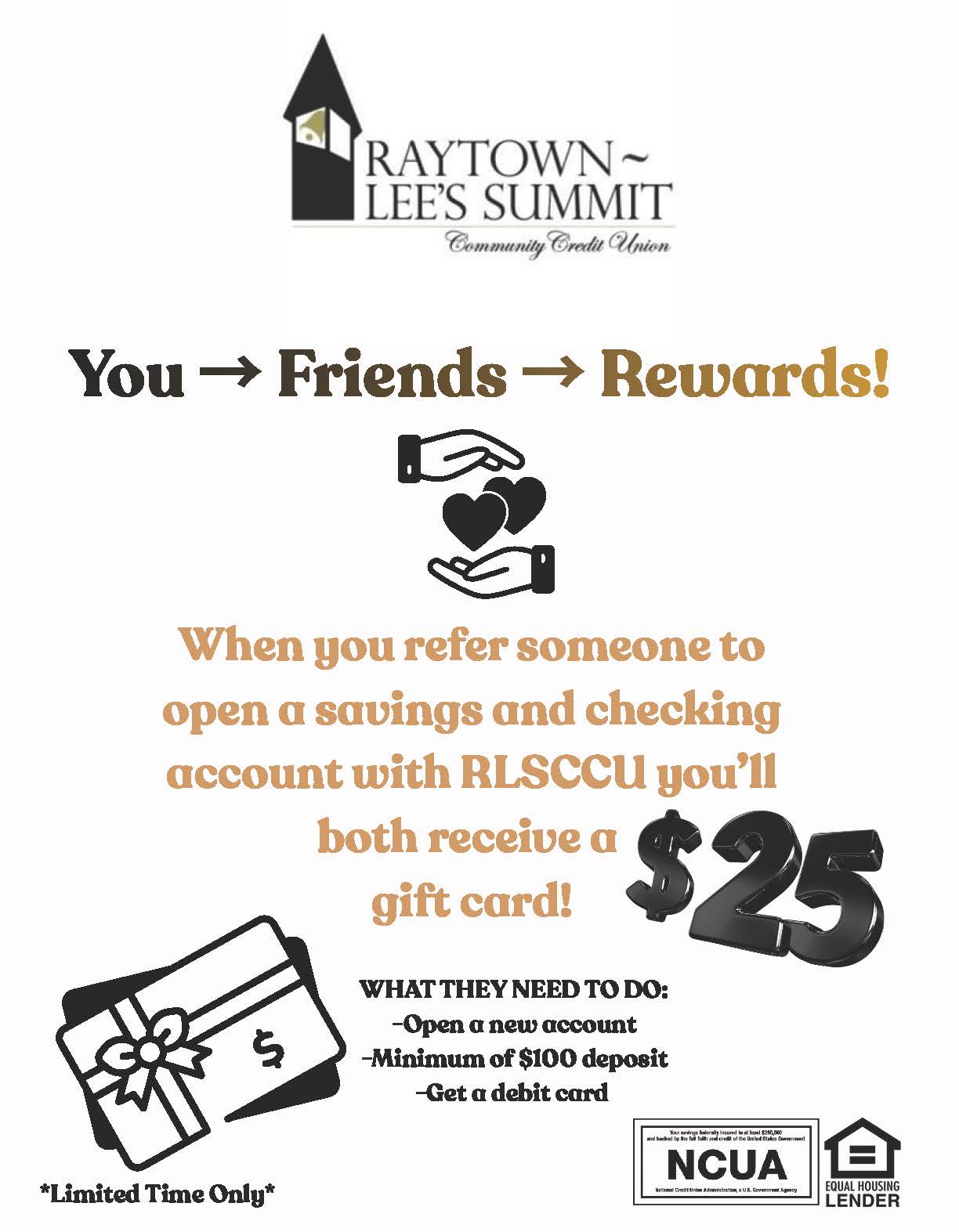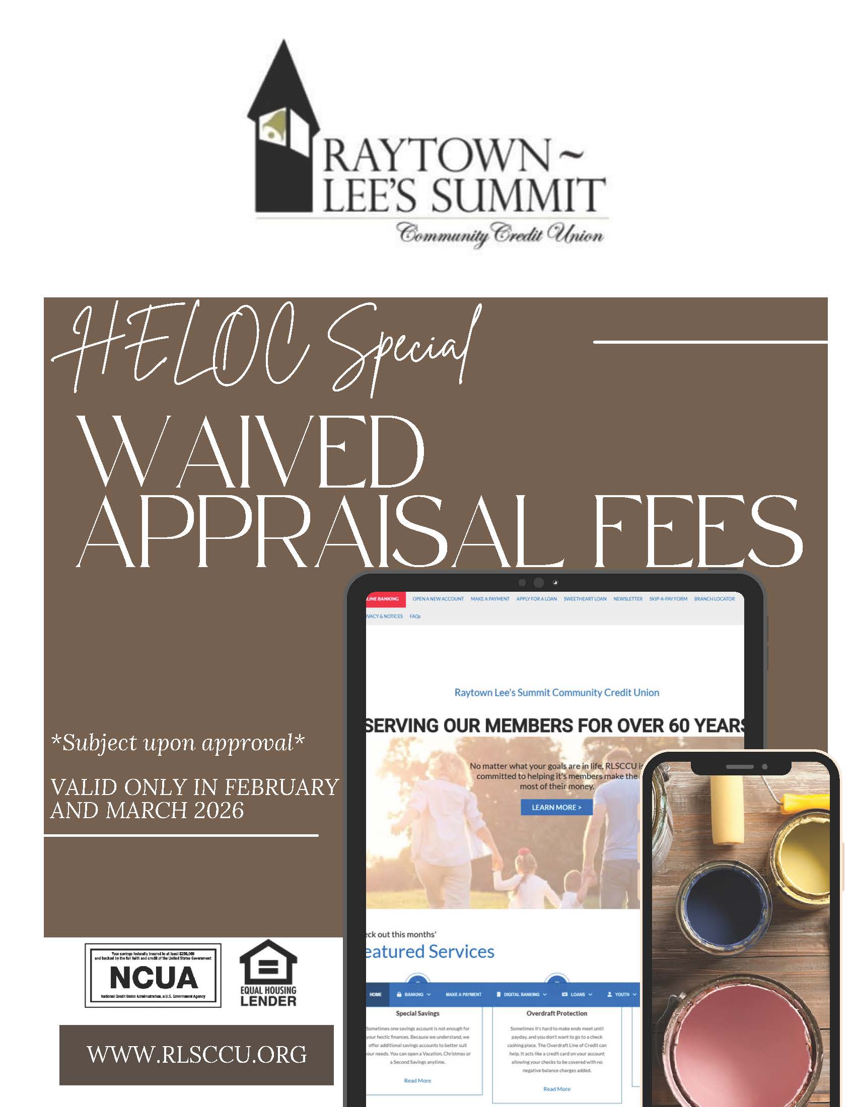 Raytown-Lee’s Summit Community Credit Union offers a comprehensive loan program designed to meet a wide array of borrowing needs. No prepayment penalties apply.